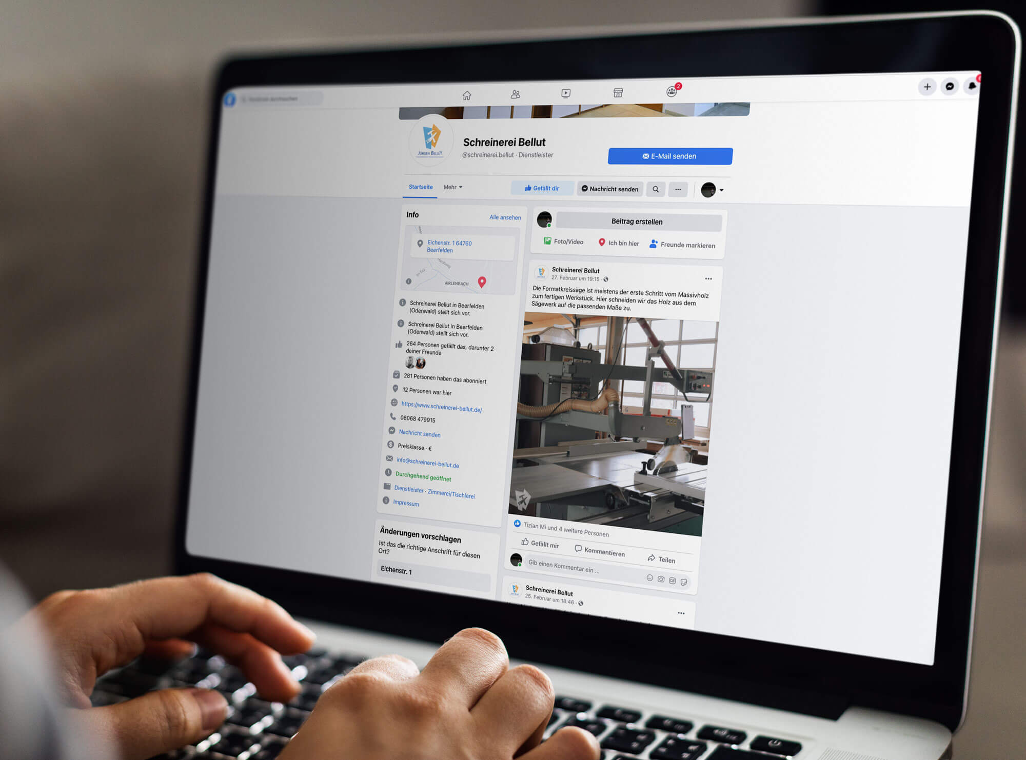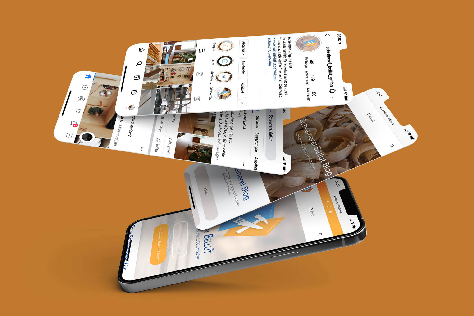 Zu einem ganzheitlichen Marketingkonzept gehört auch ein gelungener Auftritt in den sozialen Medien. Gerade im Handwerksbereich können Unternehmen von den Möglichkeiten, die Instagram & Co Instagram bieten, profitieren. Auch der Inhaber der Schreinerei Bellut hatte den Wunsch, präsenter auf Social Media zu werden. So entwickelten wir ein Schreinerei Bellut Marketing Konzept, führen seit einiger Zeit erfolgreich seine Instagram und Facebookaccounts sowie einen TikTok-Account und füllen die Feeds mit interessanten Beiträgen und aussagekräftigen Fotos.