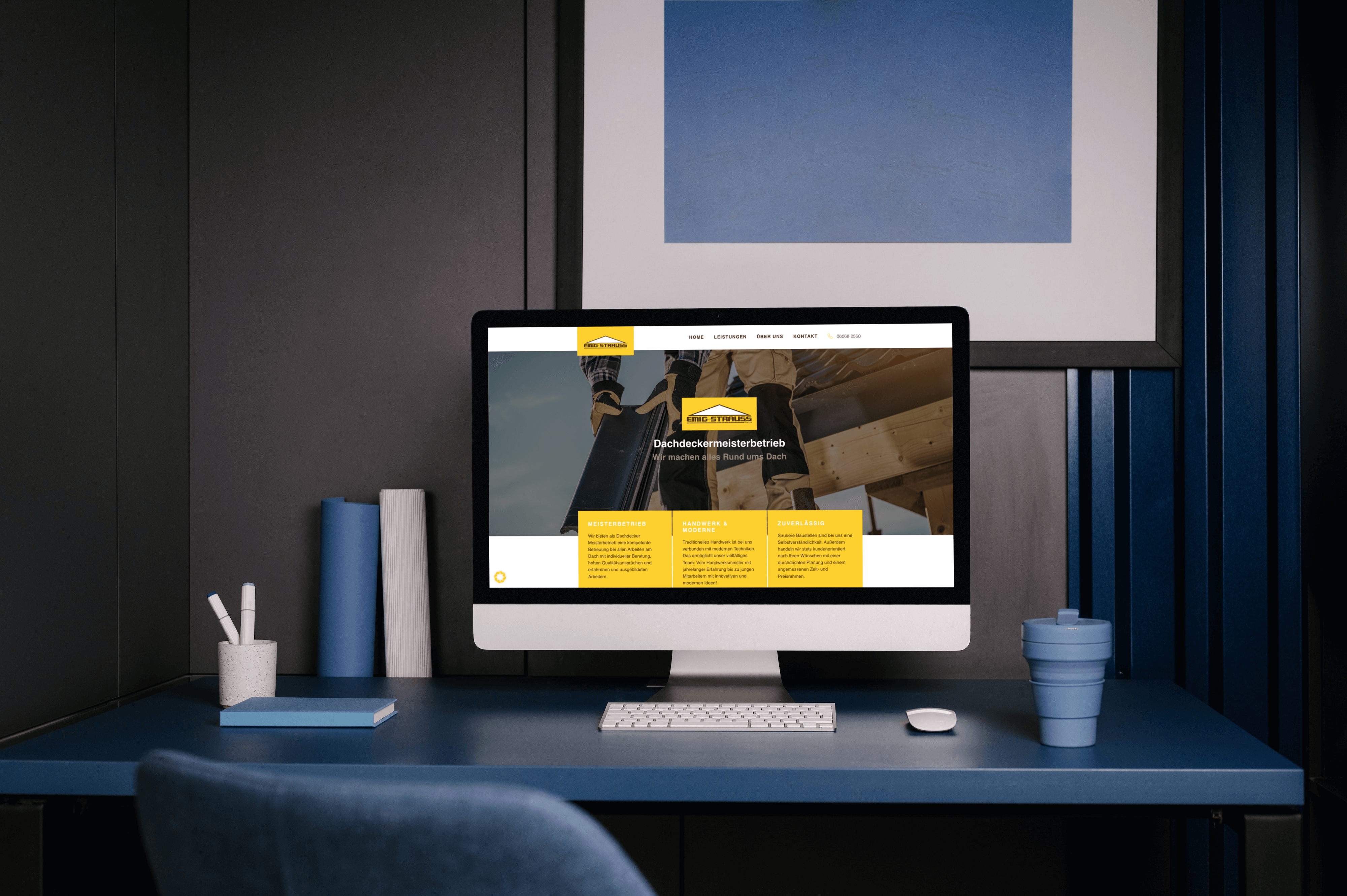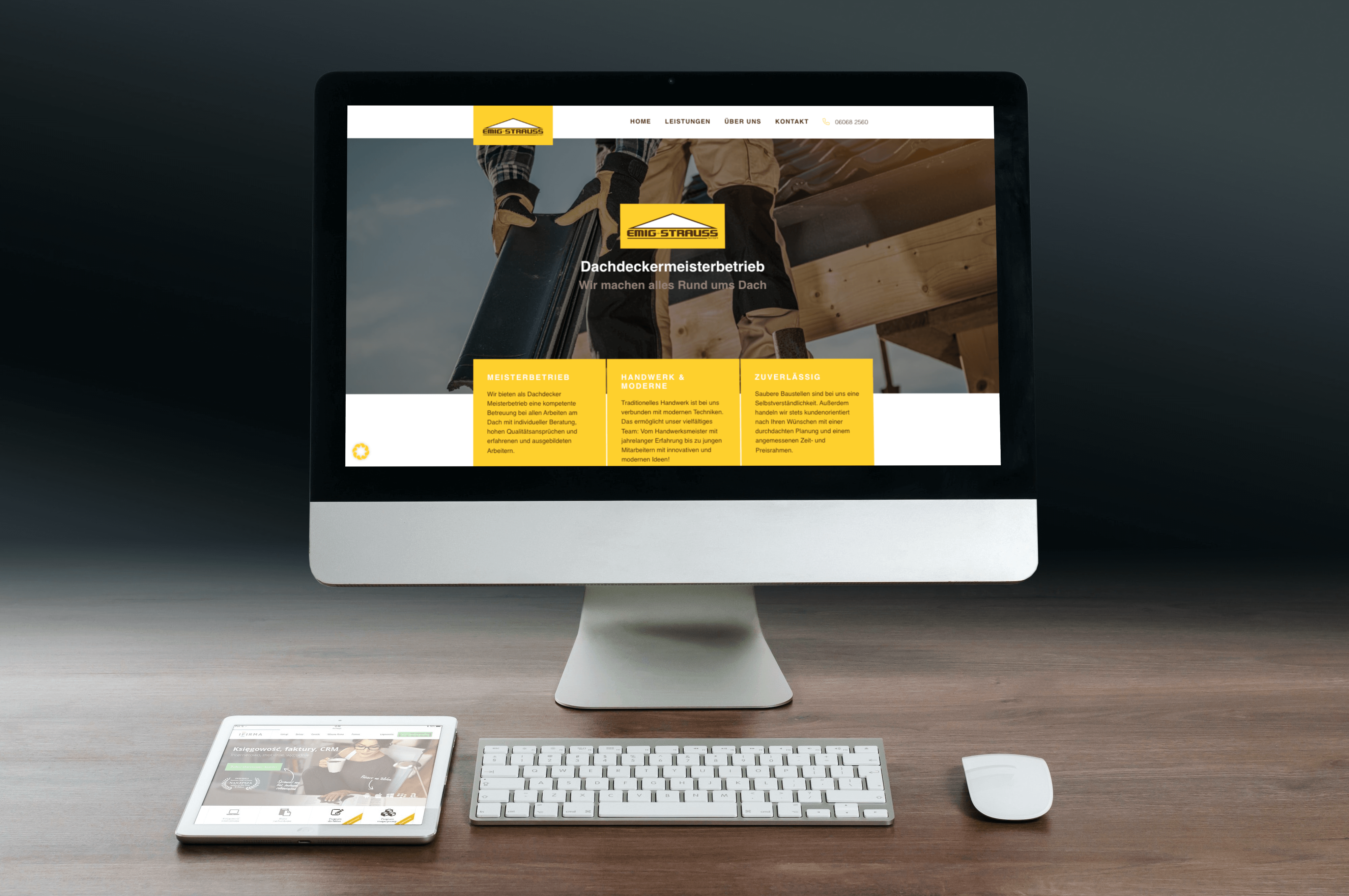 Wenn Sie auf der Suche nach einem kompetenten Dachdecker-Partner sind, sind Sie bei Emig und Strauss aus Oberzent genau richtig. Doch wie erfahren die Kunden überhaupt von den Dachdeckern? Dafür haben wir ein Webdesign für Handwerker entwickelt, eine praktische und übersichtliche Website, die den Kontakt zwischen den Handwerkern und potenziellen Kunden herstellt.