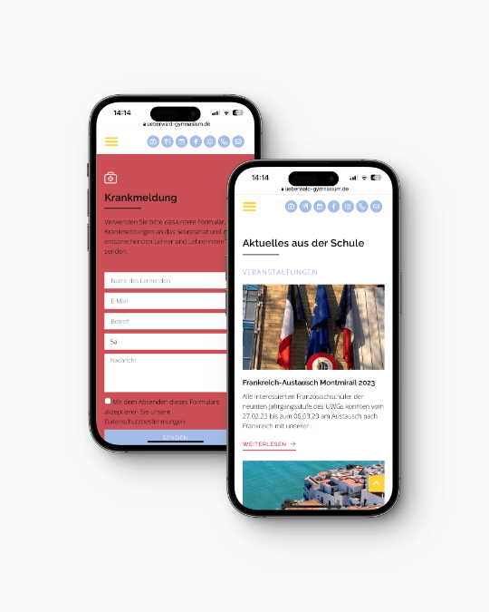 Das Überwald-Gymnasium in Wald-Michelbach (ÜWG) hat sich für eine große Veränderung entschieden und seine Webseite in Zusammenarbeit mit STARTS Design einem umfassenden Website Relaunch unterzogen. Der Fokus lag dabei auf der Optimierung der Verwaltungsprozesse und der Benutzerfreundlichkeit. Mit der Digitalisierung der Krankmeldung und der Integration von zahlreichen Kontaktformularen wurde die Webseite übersichtlicher gestaltet und ermöglicht eine einfachere Kontaktaufnahme für Eltern und Interessenten. Erfahre, wie der Website-Relaunch des ÜWG zu einer effizienteren Verwaltung beiträgt.